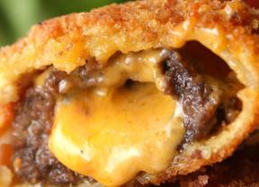 Anéis de Cebola recheados com Carne e queijo, fácil de fazer, com poucos ingredientes e que pode ser servido como petisco em várias ocasiões, principalmente em bares, residências e restaurantes.